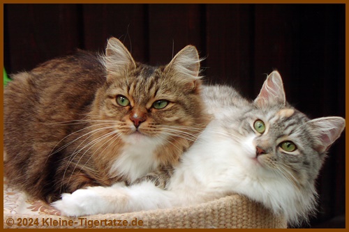 Seit vielen Jahren gehen unsere Mädels nach nur zwei bis vier Würfen mit etwa vier bis fünf Jahren, manchmal auch früher, in den Ruhestand. Das ist besser für ihren Körper und die Gesundheit. Und sie sind noch jung genug, um als Couch-Prinzessinnen noch ein langes, ruhiges und geliebtes Leben zu genießen. Wir können nicht alle Kastraten behalten, weil wir auf eine kleine, aber harmonische offene Katzengruppe Wert legen. Daher geben wir Ruheständler in ausgesuchte neue Familien ab, individuell wird jeweils der perfekte Platz gesucht und solange gewartet, bis dieser Platz auch so gefunden ist. |