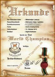 | World Champion Mittelmeijer Lukerya Sibirische Katze - Kastrat - black tabby classic /white