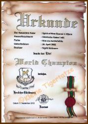 Uljana war eine der Startkatzen meiner Cattery. Sie hatte wunderbare Würfe, die sie souverän großgezogen hat. Ihr toller Charakter und ihr annähernd perfekter Sibi-Typ begeisterten immer auf Ausstellungen. Sie war meine erste World-Champion-Katze. Gut gemacht mein Mädel !!!