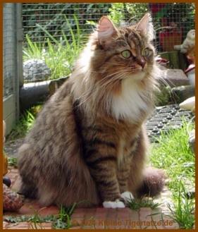 Isabella blieb lange in der Zucht. Sie war eine gute Mutter vieler Tigertatzen-Kinder. Nach der Kastration blieb sie bei uns und beteiligte sich weiterhin mit Liebe und Erfahrung an der Kitten-Erziehung. |  |