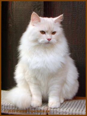 Churchill ist mein erster Zuchtkater. Er war im aktiven Zuchteinsatz von 2008 bis 2011. Er litt sehr unter seinen mächtigen Hormonen, so durfte er schon mit vier Jahren in Ruhestand gehen und genießt nun das ruhige Leben als Kater-Teddy-Knuddelbär. Seine Linien führen wir mit Lukerya und Yaanah weiter. |